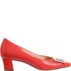 Lodičky högl so stabilným podpätkom na každý deň s módnou sponou. Kožené lodičky högl s mäkčeným lakom.Dodatočné parametre