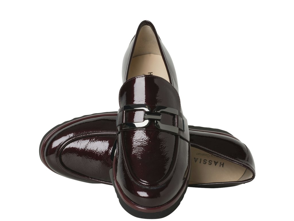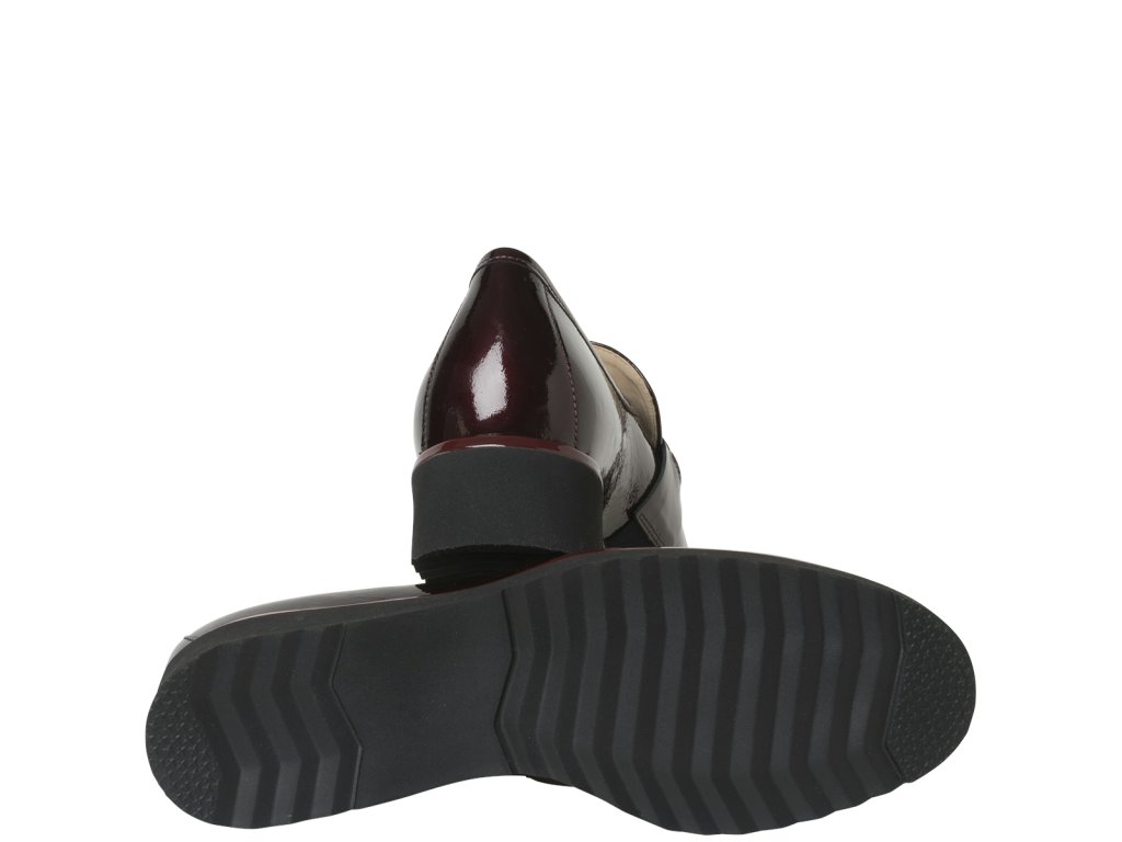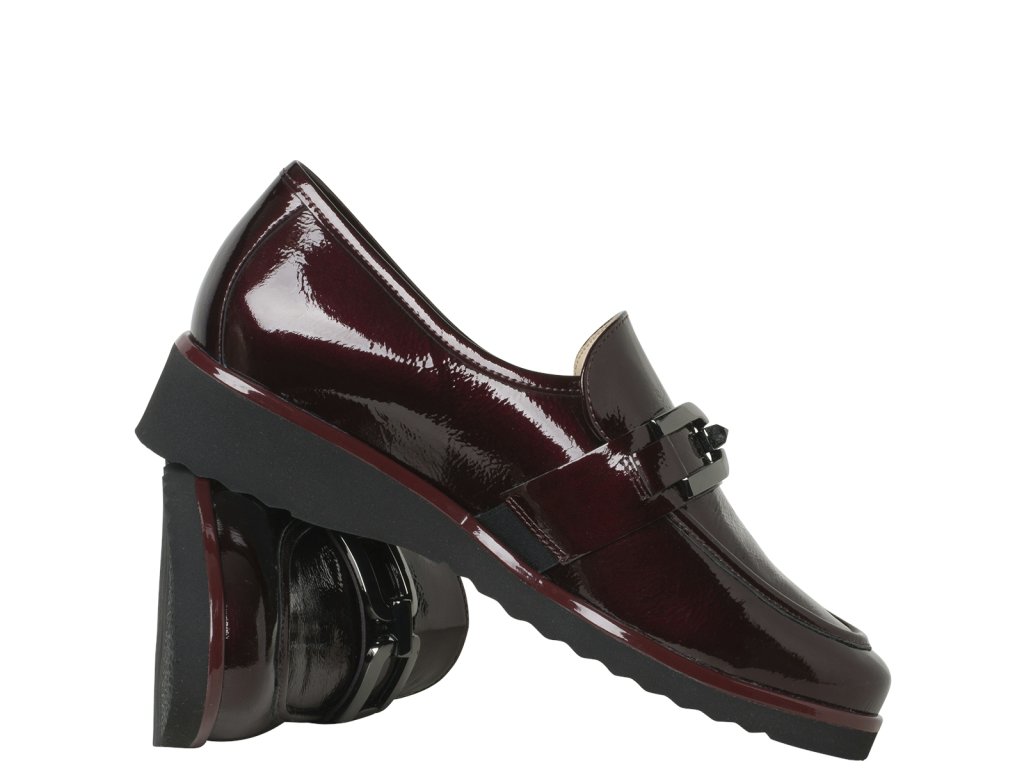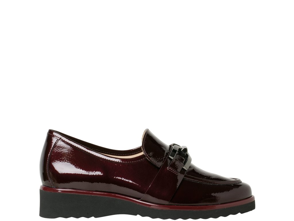 Komforné, zdravotné mokasíny s vyberateľnou stieľkou, extra ľahké. Obuv na široké chodidlo v šírke H. Dámske mokasíny SEVILLA sú elegantnou zmesou nadčasovej elegancie a moderného pohodlia. Jemne lesklá lakovaná koža v úžasnom tmavočervenom odtieni Cabernet dodá vášmu vzhľadu rafinovaný nádych. Charakteristická podrážka nielenže zaisťuje štýlový vzhľad, ale poskytuje aj stabilitu pri každom kroku. Skrytá elastická vsadka zaručuje optimálne prispôsobenie, zatiaľ čo zlatý ozdobný remienok dodáva sofistikovaný akcent. Mäkká kožená podšívka je príjemná na dotyk.