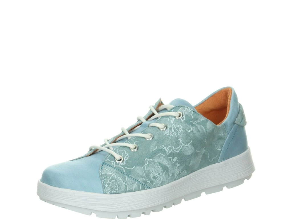 Pohodlné ako tenisky, štýlové ako spoločenské topánky, šnurovacie topánky COMODA od Think! majú ležérne kovové očká na šnurovanie. Je to vďaka mimoriadne mäkkej koži a extra ľahkej gumenej podrážke, ktorá tlmí každý krok. Ľahká guma tiež poskytuje izoláciu a protišmykovú ochranu. Módny detail: prešitý podpätok. COMODA tiež ponúka vyberateľnú stielku, ktorú je možné v prípade potreby ľahko vymeniť. Udržateľnosť: Opraviteľnosť, podšívka z vyčinenej kože bez chrómu.